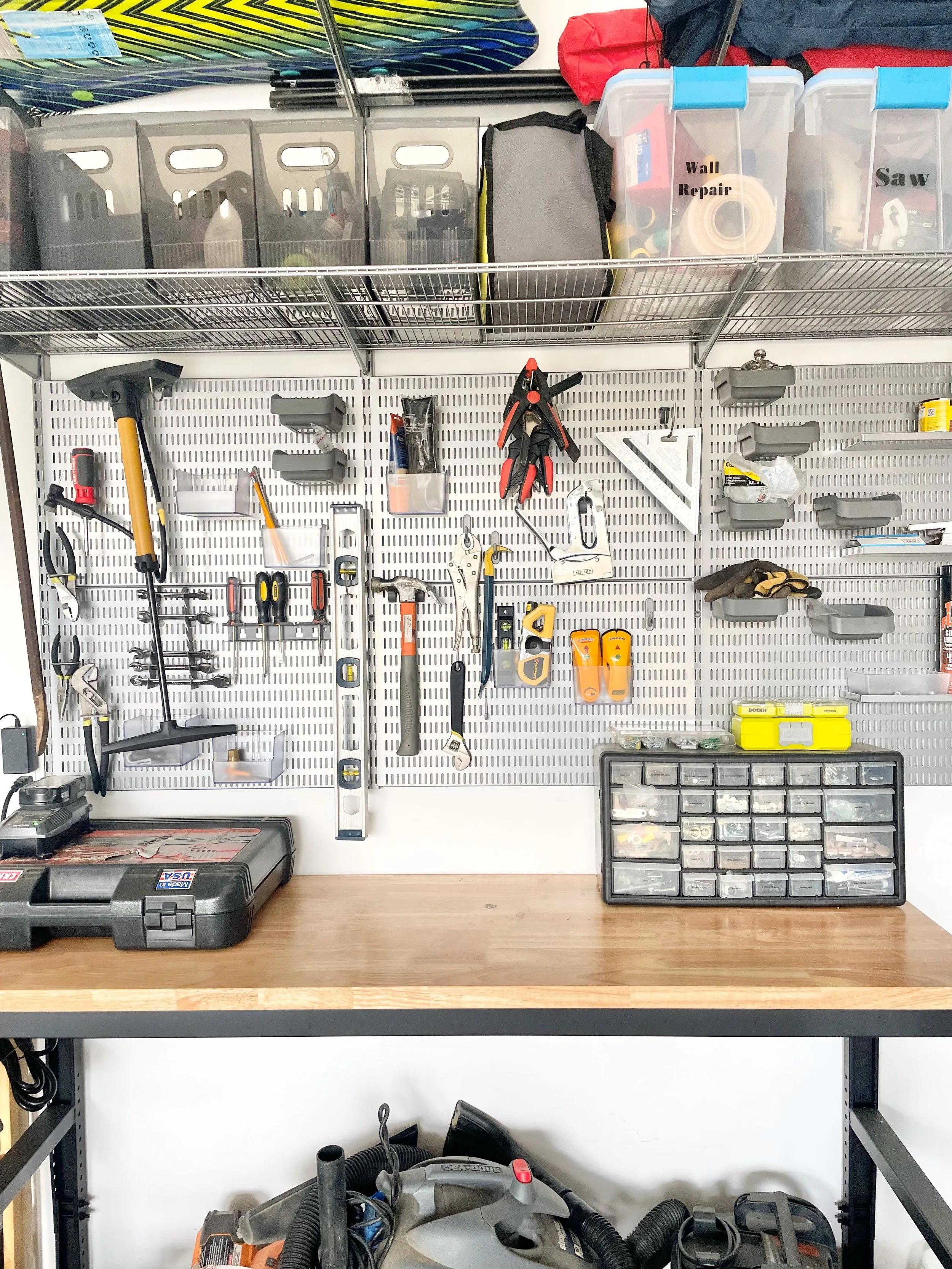 Install Wall Racks or Pegboards: Hang tools and equipment to free up floor space.